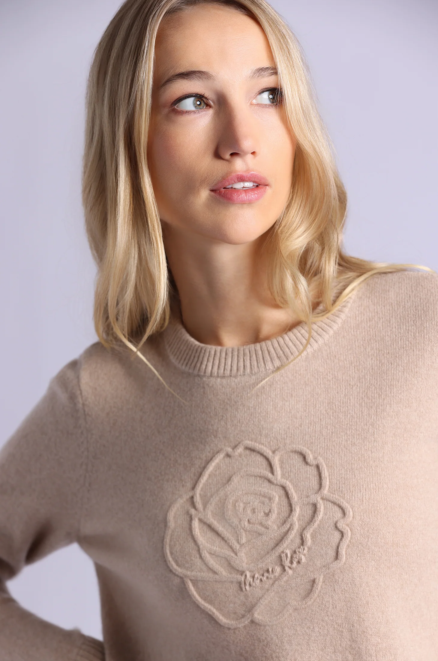 -70%Cashmere Embossed Rose Logo Crew Neck—