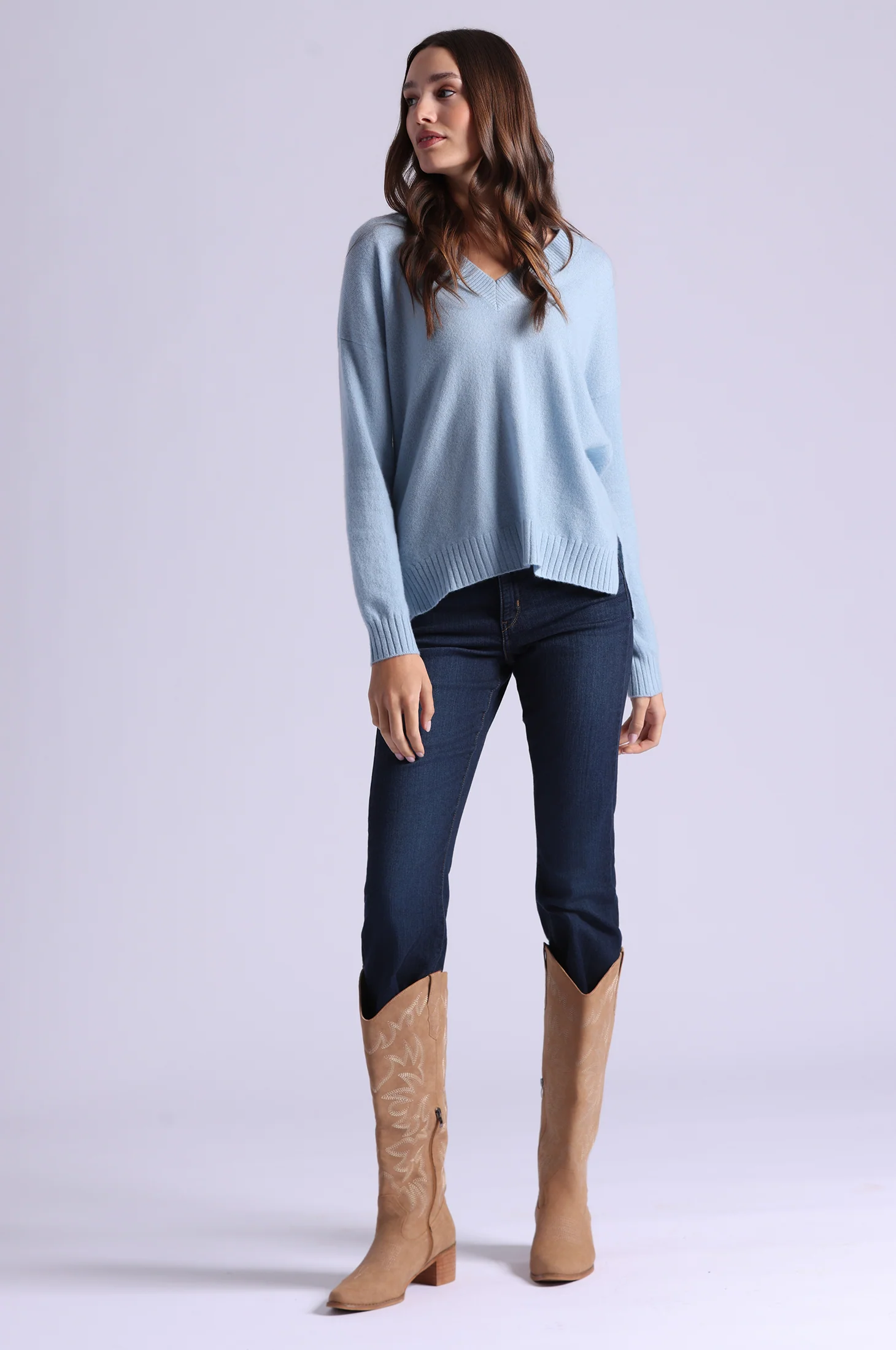 Cashmere Long and Lean V Neck
